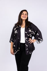 קימונו קצר בהדפס שחור לבן