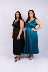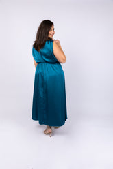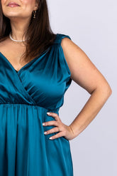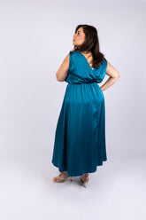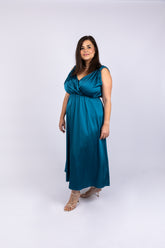 שמלת ערב סאטן בכחול פטרול