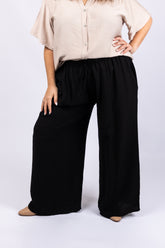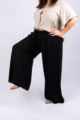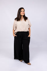 מכנסיים רחבים ישרים עם גומי, מגיעים עד אמצע המותן,